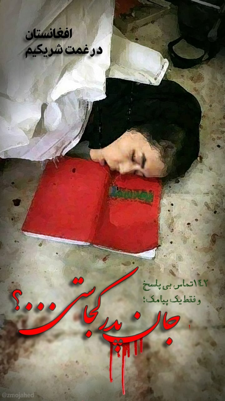 جان پدر پس کجاستی افغانستان تسلیت. پیام تسلیت ظریف به سردار قاآنی. ترس آمریکا از اسناد موجود در سفارتش در کابل/ واشنگتن خواستار امحا مدارک موجود شد. در افغانستان هرچند حملات و انفجارها همه روزه قربانی میگیرد، اما قتل این داکتر جاپانی بسیاری مردم را شوکه کرد و موجی از انزجار افغانها را در پی داشت. افغانستان را به زور تصرف کنید، جامعه جهانی شما را به رسمیت نخواهند شناخت.